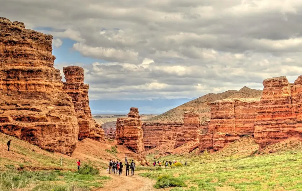 Scopri il Charyn Canyon, conosciuto come la “Valle dei Castelli”: gole profonde fino a 370 m, rocce scolpite dal vento e paesaggi che ricordano il Grand Canyon in miniatura. Questo ambiente imponente è perfetto per un percorso off‑road, con soste fotografiche e trekking tra le formazioni rocciose uniche nel Parco Nazionale di Charyn.